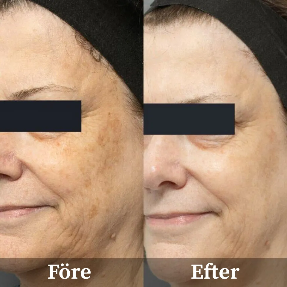 Reducerar solskador, fina linjer och pigmentering redan efter första behandlingen